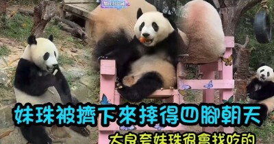 妹珠被媽媽從龍椅一屁股擠了下來,妹珠手握竹筍好淡定繼續吃飯,大良誇妹珠比萌萌會找吃的